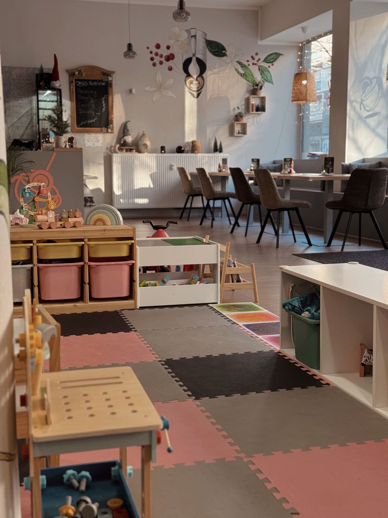 Jsme rodinná kavárna s dětským koutkem, kde myslíme na komfort všech hostů. U nás se zouváme, aby měly děti čisté a bezpečné prostředí na hraní. Samozřejmostí je také zadní vchod pro kočárky, aby byl přístup co nejpohodlnější.
